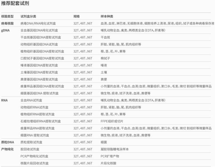 應用領域:從多來源樣本中全自動純化總核酸、全自動純化基因組DNA、全自動純化RNA